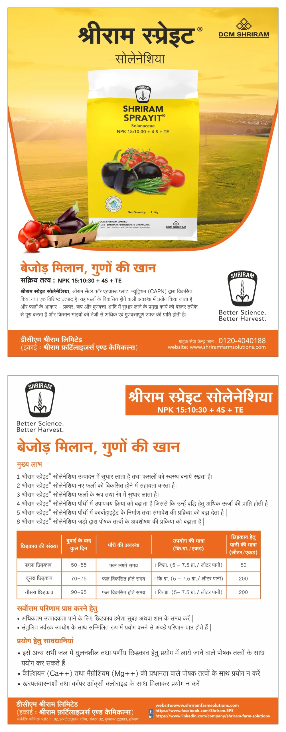 At Flowering Initiation stage till Fruit Maturity stage (3 sprays, 2 weeks apart)