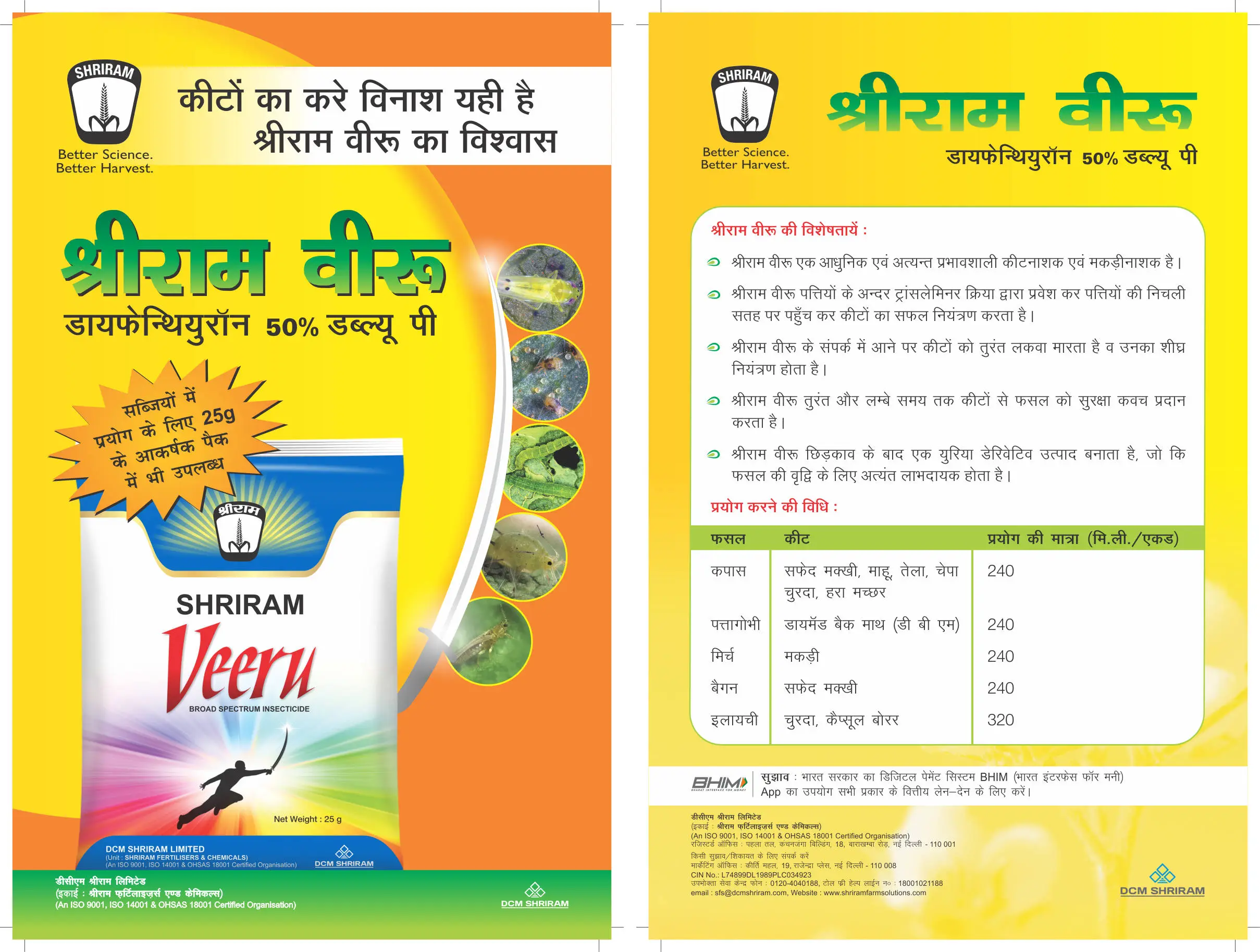 - 225 – 250 g/acre (Brinjal)