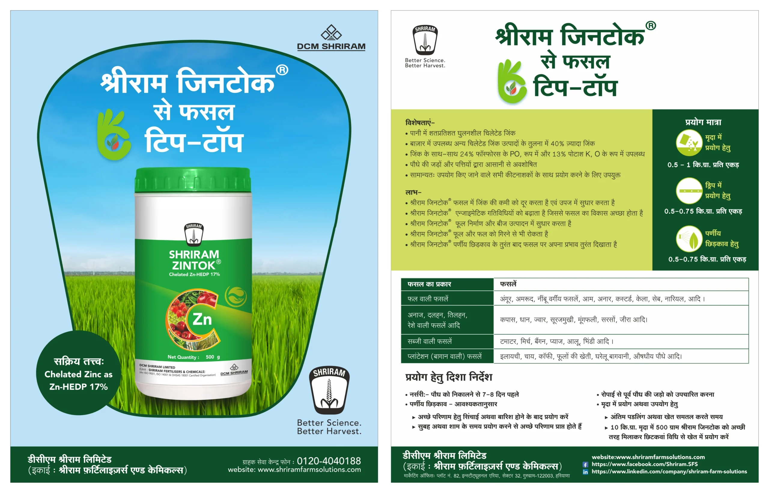 Basal: 0.5-1 kg/acre in 10-20 kg of soil Foliar: 0.5-0.75 g/lit of water